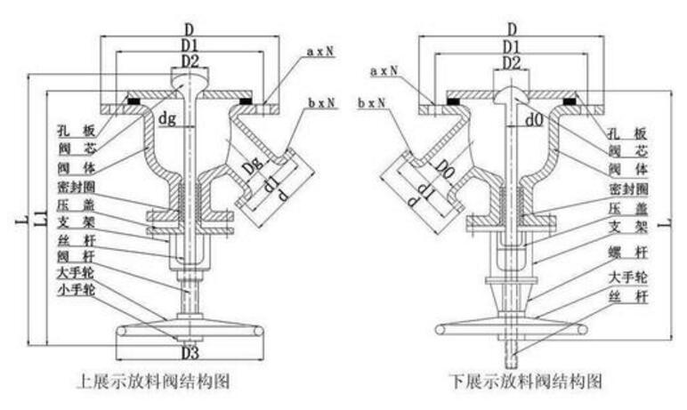 1、下展式放料阀适用于结晶体物料,对于颗粒度较大的物料放料效果较理想,由于密封阀片是F46材质;